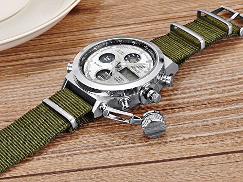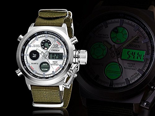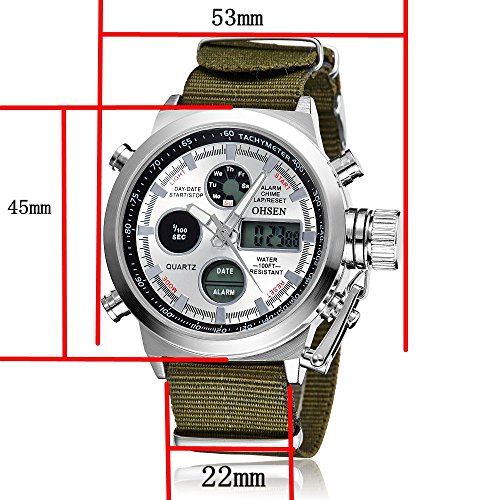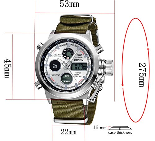 Studio : Ohsen Publisher : Ohsen Binding : Watch Product Description Specification : - Band Width: 2.3 cm - Dial Diameter: 4.5 cm - Case thickness : 1.7cm - Length of watch strap(include watch case): 28.5 cm - Case material: alloy - Dial window material type: hardlex - Dial material type:alloy - Movement:quartz - Clasp type: buckle - Style:fashion casual - Dial display: analog - Case shape: Round - Bank material : canvas