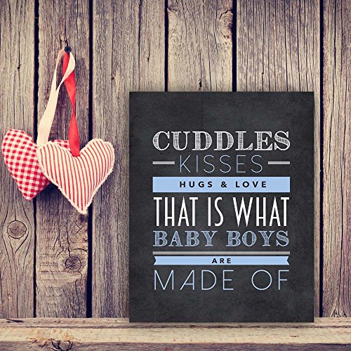 Nursery Art Chalkboard Typography Print in Baby Blue, Perfect Christening, Baptism or New Baby Gift, 8x10"