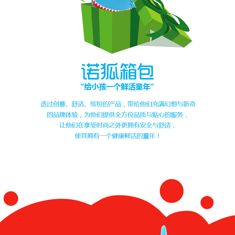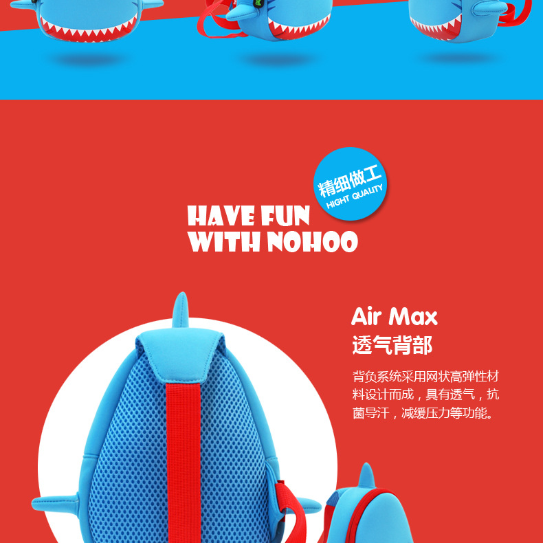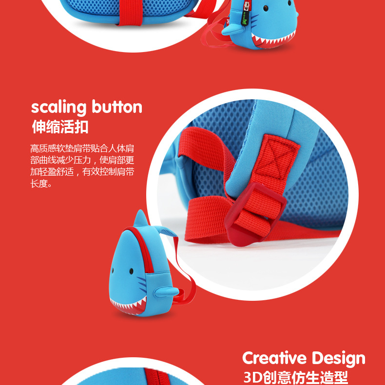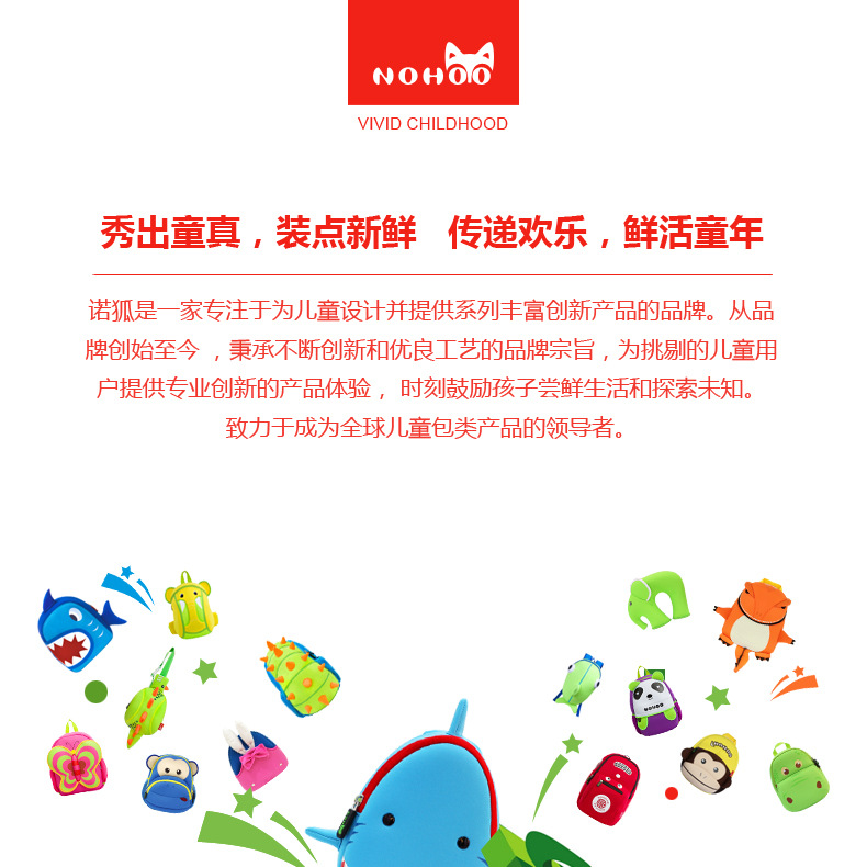 诺狐采用独特的Neoprene潜水料,有别于一般材质,潜水料具有良好的柔软性与弹性,防水防潮,质地轻盈等特点,有适用于专业潜水衣及各种运动领域,其立体塑形极具个性的特性更风靡时尚圈。诺狐童包独特的设计与良好的材质有别于一般的儿童包,立体结构剪裁,鲜艳大胆的配色,打材料的特性发挥到淋漓尽致,为我们的用户提供缤纷、舒适、健康的产品体验。