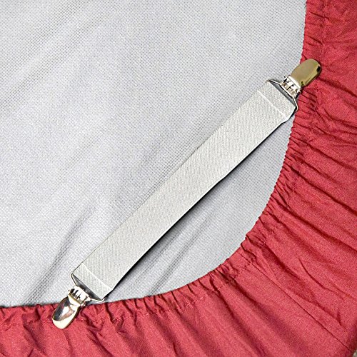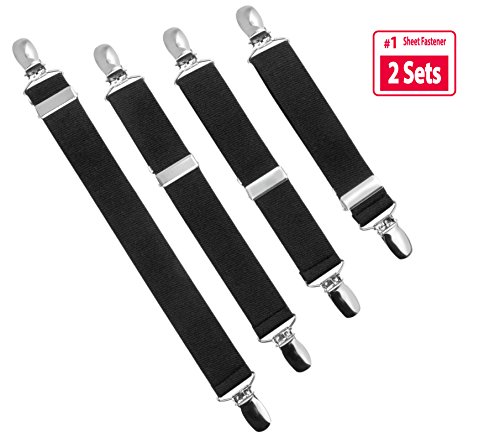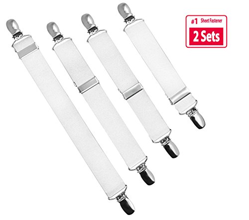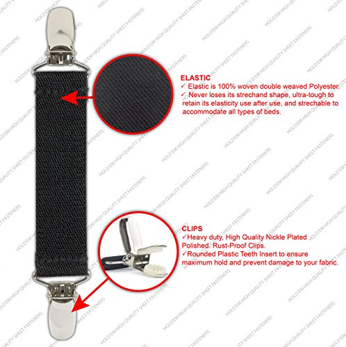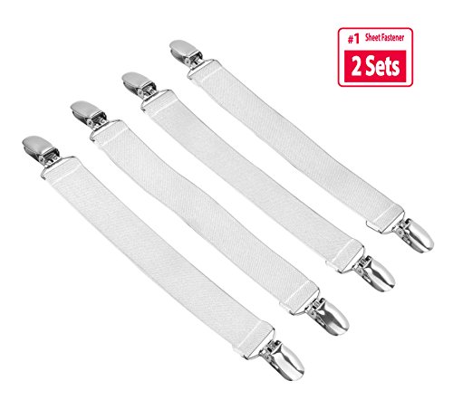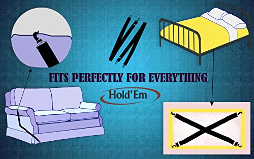 Product Description HOLD'EM PREMIUM HIGH QUALITY BED SHEET SUSPENDERS FASTENERS KEEP SHEETS SNUG WITHOUT SLIPPING SLEEP BETTER!! Do you want your bedroom to look nice and clean and sleep great and not wake up in the morning with sheet covers that are flying down from your bed? Rather than the cheap junky would you like durable, sturdy, and super strong Bed Sheet Fasteners that keep you bed sheets or mattress covers tucked in? If so, you had made the perfect choice when buying those Bed Sheet Suspender Fasteners. Designed with extra sturdy, high quality polished metal clips, ultra soft elastic, offering you premium quality that will last for a life time. With our Hold'Em Bed Sheet Fasteners you can prevent an uncomfortable sleep while performing high quality. Our Extra Sturdy Bed Sheet Fastener are a premium choice with a number of key benefits: ? Designed for any type of bed - can be used for all kinds of bed sizes such as king, queen, twin, hospital bed, hide-a-bed, crib, or just a regular size bed. ?Worry free messy or wrinkled sheets - with purchasing these Hold'Em Sheet Fasteners you can be sure that your sheet will always stay wrinkle free and have a classy and clean look. ? Perfect for Gift Giving - Buy today and have a perfect gift to give for any occasion and to any of your beloved such as you husband or boyfriend. ?Highest Quality Clips - Made with the strongest quality clips to help keep your bed sheet attached to your bed. ?Best Quality Comfortable Elastic - 100% Woven Polyester Double Weaved, doesn't fray, strong soft finish material. Will never lose its stretch and shape, ? Great for Bed sheets, fitted sheets, flat sheets, crib sheets, mattress pads, and many many more. So, if you would like the World's Best Premium Bed Sheet Fastener featuring High Quality Clips and Durable Elastic These Bed Sheet Fastener will be the perfect choice for you. Click "Add to Cart" to buy it now and enjoy a lifetime neat looking bed!! 0
