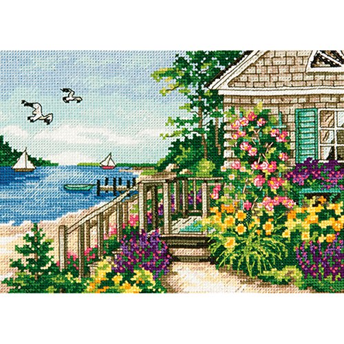 Dimensions 18 Count Gold Petite Bayside Cottage Counted Cross Stitch Kit, 7 by 5-Inch