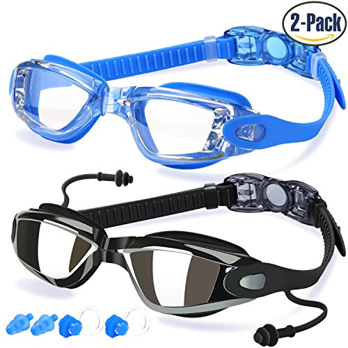 Swim Goggles, Pack of 2, Swimming Goggles for Adult Men Women Youth Kids Child, Triathlon Equipment, with Mirrored & Clear Anti-Fog, Waterproof, UV 400 Protection Lenses, Made by COOLOO