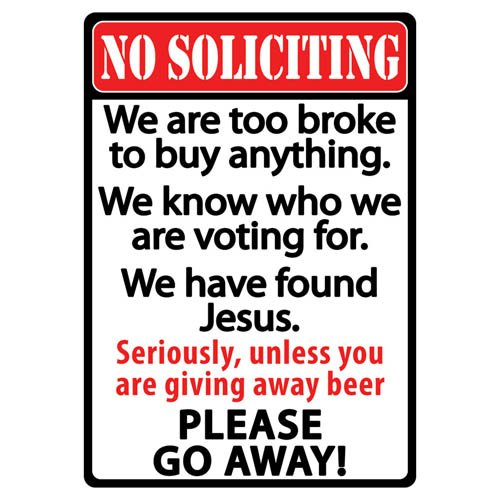 Rivers Edge Products Tin Sign, 12-Inch by 17-Inch, No Soliciting