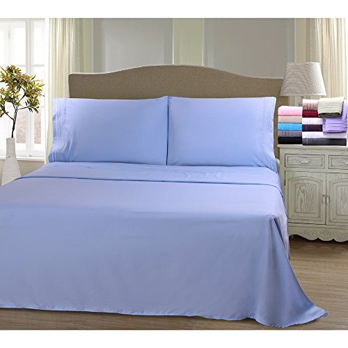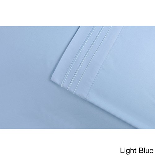 Superior Wrinkle Resistant Emboidered Microfiber Deep Pocket Sheet Set Light Blue 4 Piece Calif...