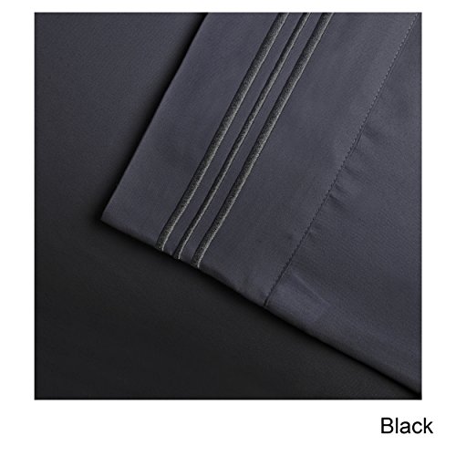 Drift into a peaceful slumber under these soft, embroidered sheets. Featuring beautiful giftbox packaging, this sheet set has the look and feel of the perfect gift.Set includes: One (1) flat, one (1) fitted, and two (2) pillowcases (one (1) included with Twin and Twin XL)Weave: PlainSheet type: SolidFitted sheet pocket depth: 15 up to 18 inchesFully elasticized fitted sheet: YesColor options: Aqua, Burgundy, Black, Charcoal, Ivory, Light Blue, Lilac, Pink, Plum, Sage, Silver, Tan, Taupe, WhiteTheme: 3-Line EmbroideryGender: UnisexMaterials: 100-Percent microfiberCare instructions: Machine washableTwin dimensions:Fitted sheet: 38 inches wide x 75 inches longFlat sheet: 66 inches wide x 96 inches longTwin XL dimensions:Fitted sheet: 38 inches wide x 80 inches longFlat sheet: 66 inches wide x 100 inches longFull dimensions:Fitted sheet: 54 inches wide x 75 inches longFlat sheet: 81 inches wide x 96 inches longQueen dimensions:Fitted sheet: 60 inches wide x 80 inches longFlat sheet: 90 inches wide x 102 inches longKing dimensions:Fitted sheet: 78 inches wide x 80 inches longFlat sheet: 108 inches wide x 102 inches longCalifornia King dimensions:Fitted sheet: 72 inches wide x 84 inches longFlat sheet: 108 inches wide x 102 inches longThe digital images we display have the most accurate color possible. However, due to differences in computer monitors, we cannot be responsible for variations in color between the actual product and your screen.