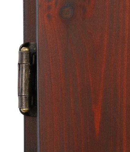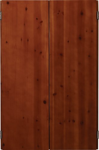 - Feature : This dartboard cabinet features a cinnamon finish and is lined with black felt / Quality construction comprised of solid pine, box joints, and self-closing hinges / Features a lower shelf storage area with removable dart and accessory holder / Fits most electronic soft tip dartboards; Includes dry erase scoreboard and mounting hardware / Open dimensions: 38-1/2" L x 49-1/2" W x 3-1/2" D; Inside dimensions: 31" L x 24" W x 2-1/8" D