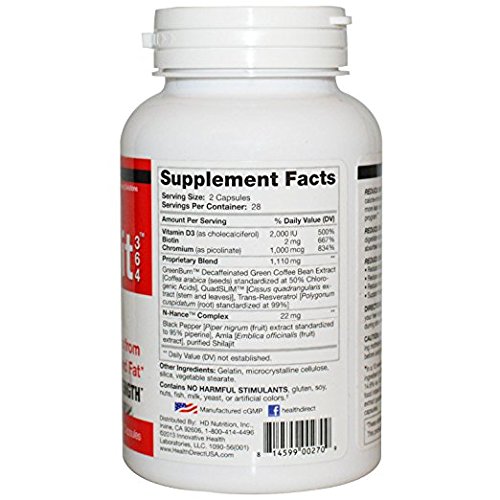 -. Feature : Reduce body fat stores / Reduce appetite and cravings / Reduce the digestion and absorption of sugar, starch and fat / Support healthy blood sugar and insulin within normal levels / Includes Vitamin D3, Biotin, Chromium, GreenBurn decaffeinated Green Coffee Bean Extract, Cissus quadrangularis extract, Trans-Resveratrol, Black Pepper, Amla, and purified Shilajit