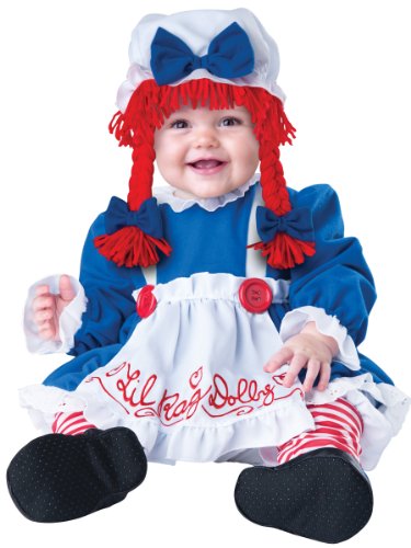 -. Brand : In Fashion Kids -. Color : Multi -. Department : baby-girls -. Feature : Your child will be a true doll in this Ragamuffin Dolly Kids Costume. Lined zippered jumpsuit with attached skirt, apron and leg snaps for easy diaper change, hat with attached hair and pig tails, plus slip-on booties with skid resistant bot. -. ProductGroup : Apparel -. ProductTypeName : BABY_COSTUME -. Title : Raggedy Ann Costume - Lil Rag Dolly Costume