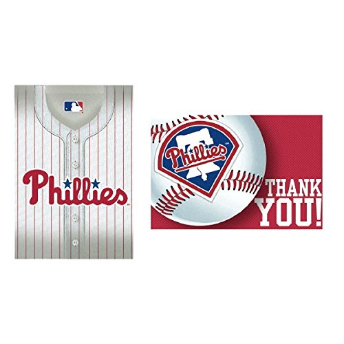 Sports and Tailgating MLB Party Philadelphia Phillies Invitation & Thank You Card Set , Paper, 3" x 5", Pack of 16
