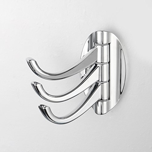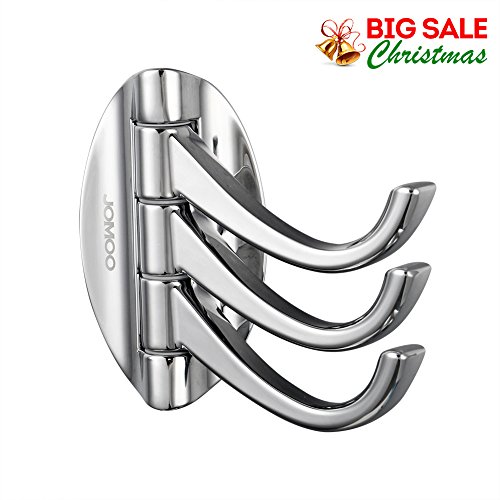 JOMOO Wall Mounted Flexible Triple Robe Hook Swivel Hook Towel Robe Clothes Hat Coat Hook for Bath Kitchen Garage Heavy Duty Contemporary Hotel Style , Chrome