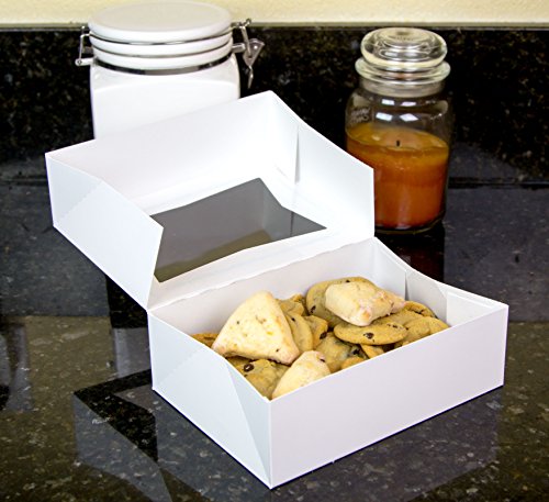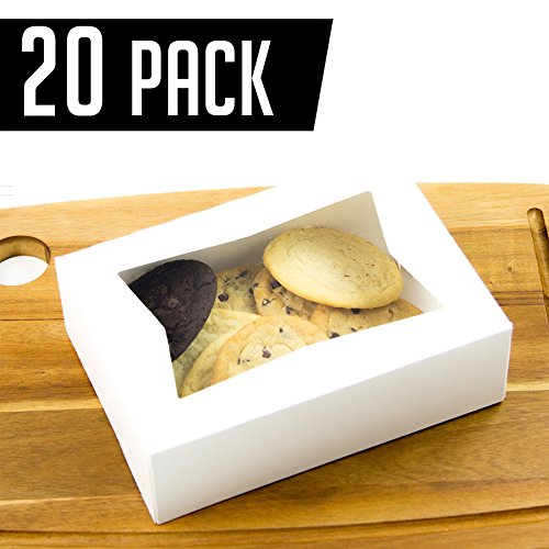 Durable Pastry and Cookie Box With Window, 8x5.3x2 Inches, Extra Sturdy, Easy Pop-Up Assembly and Perfect for Cookies and Pastries, Set of 20- By Chefible