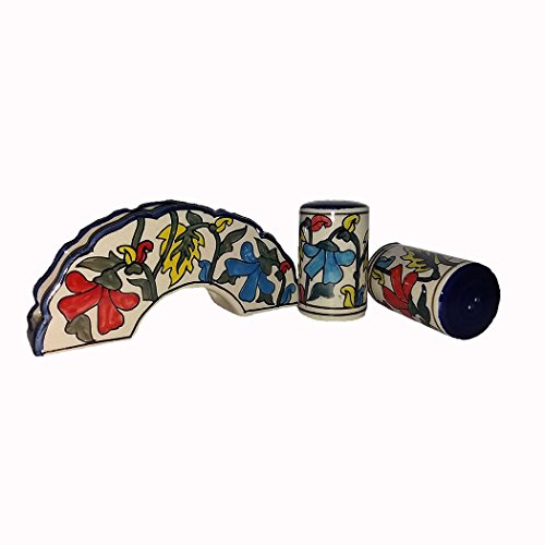 Indeasia Srijan Handcrafted & Hand painted Salt & Pepper Shaker With Napkin Holder In Multicolor Moroccan Design