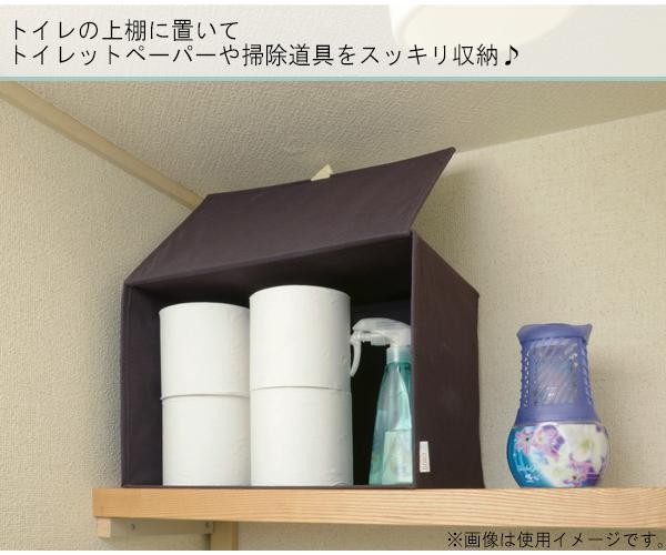 | トイレ等の上棚に置いてトイレットペーパーや掃除道具を収納する上置きボックスです。トイレットペーパーのみなら12ロールまで収納できます。 |