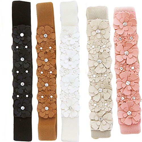 (Chuangli)/Accessories/Belts Buckles/DIRECT FROM USA/CHUANGLI Elegant Ladies Flower Elastic Cinch Belt Sweet Rhinestone Decorative Belt Waistband
