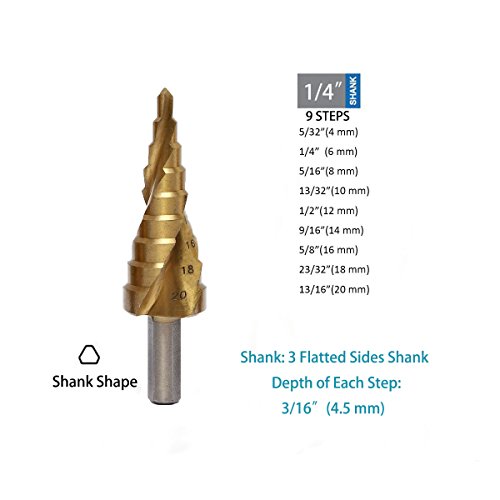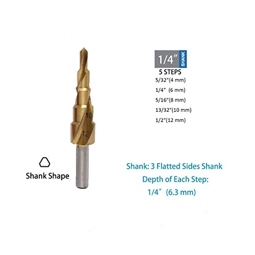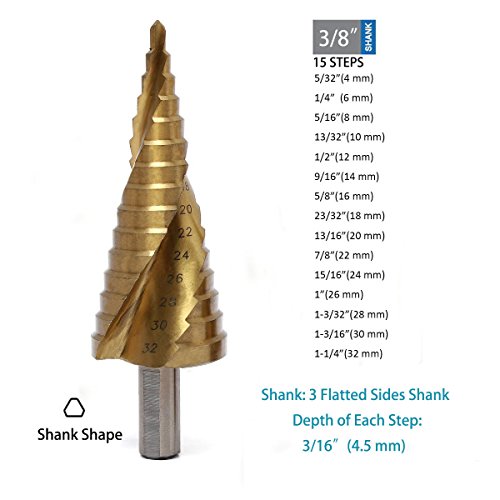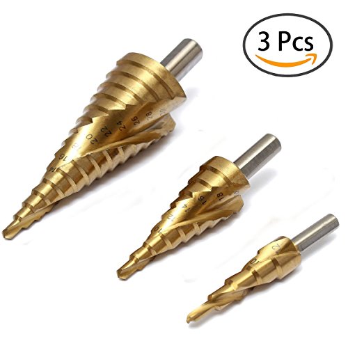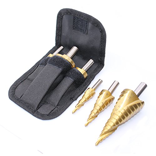 GORCHEN Titanium Step Drill Bit Set High Speed Steel HSS 3 Piece Set Total 15 Step Sizes