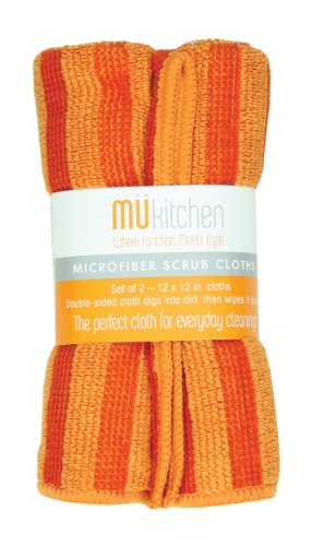 MUkitchen Microfiber Cleaning Cloth, 12 by 12-Inches, Set of 2, Orange