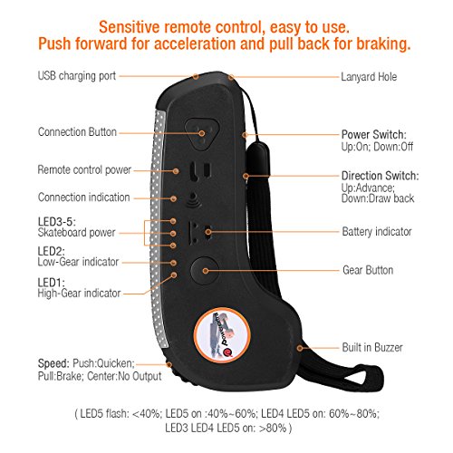 User-friendly Longboard: Sensitive remote control, easy to use. Turn the remote on, and then turn the skateboard on to connect. Push forward for acceleration and pull back for braking.
