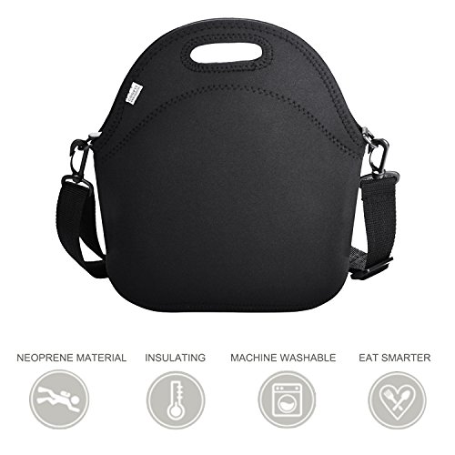 This premium lunch tote offers: ? Thicker 3.5mm neoprene for better insulation ? Spacious 12" x 11" x 6" design to hold more food ? Built-in stretch to accommodate bulky containers ? Heavy-duty zipper to keep it all secure ? Comfy handle for easy toting ? Classic black color, match all your outfits, dirty-proof - so it's easier to find your lunch in the office fridge!