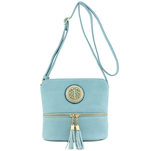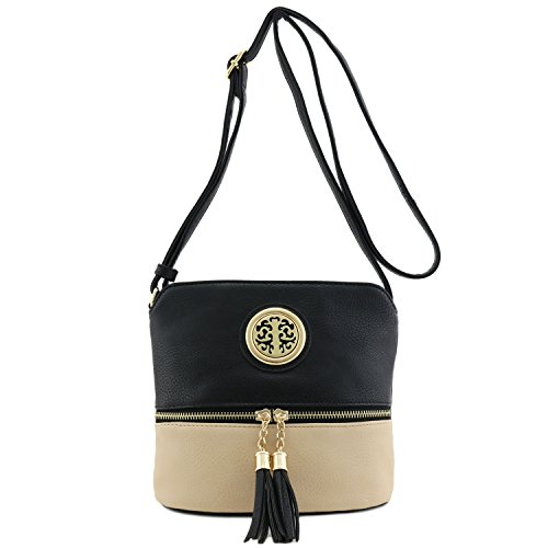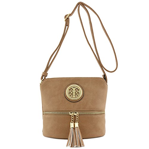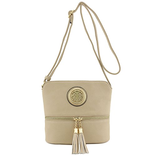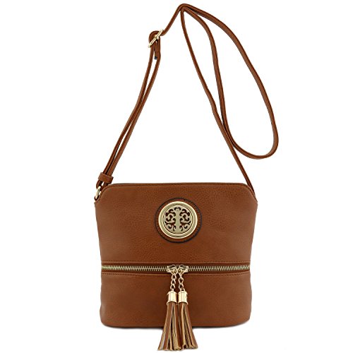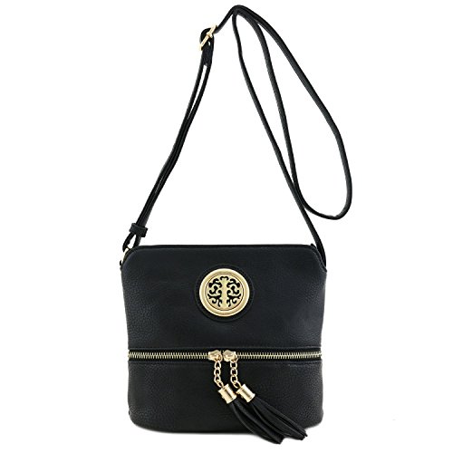 This tassel zip accent small-medium size crossbody bag makes easy to organize your everyday items.