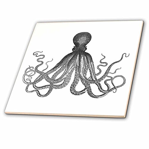 3dRose ct_112921_1 Vintage Octopus-Black and White Lord Bodner Kraken-Cthulu-Nautical Underwater Sea Giant Squid-Ceramic Tile, 4-Inch