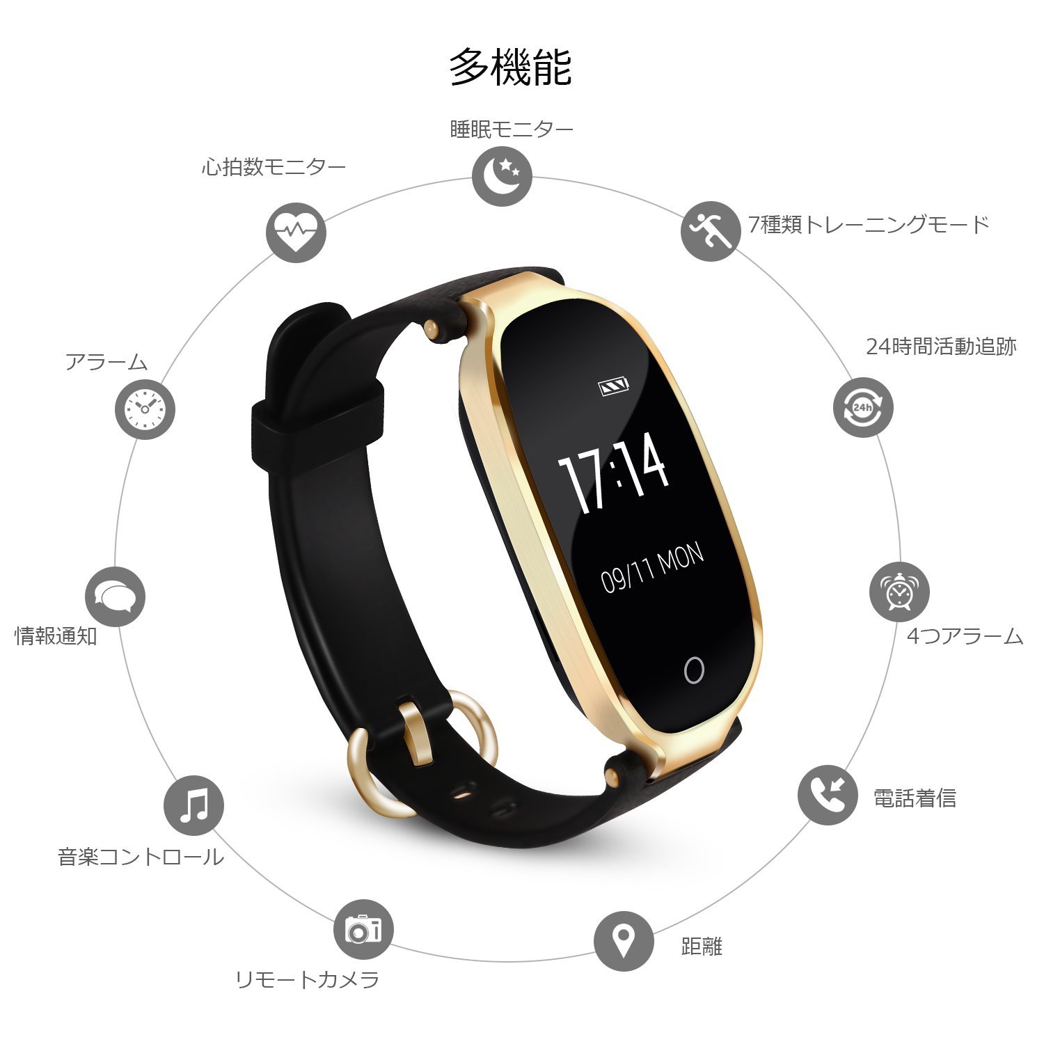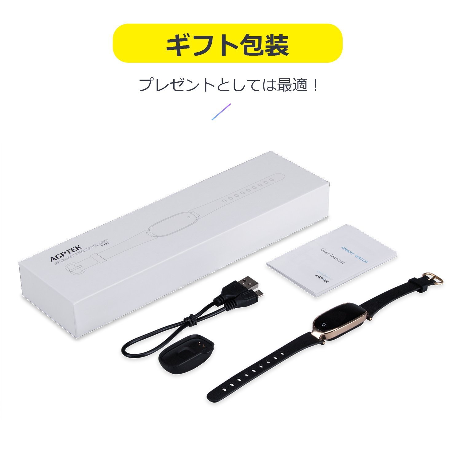 Smart bracelet body * 1, charger * 1, USB cable for charging * 1, multilingual instruction manual (Japanese · English · German · French)