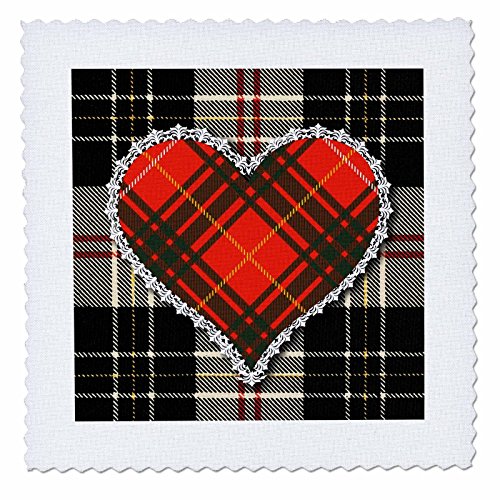 3dRose Scottish Plaid Tartan Heart with White Edging - Quilt Square, 6 by 6-Inch (qs_223306_2)