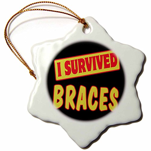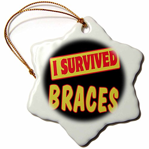 3dRose orn_117810_1 I Survived Braces Survival Pride and Humor Design Snowflake Porcelain Ornament, 3-Inch