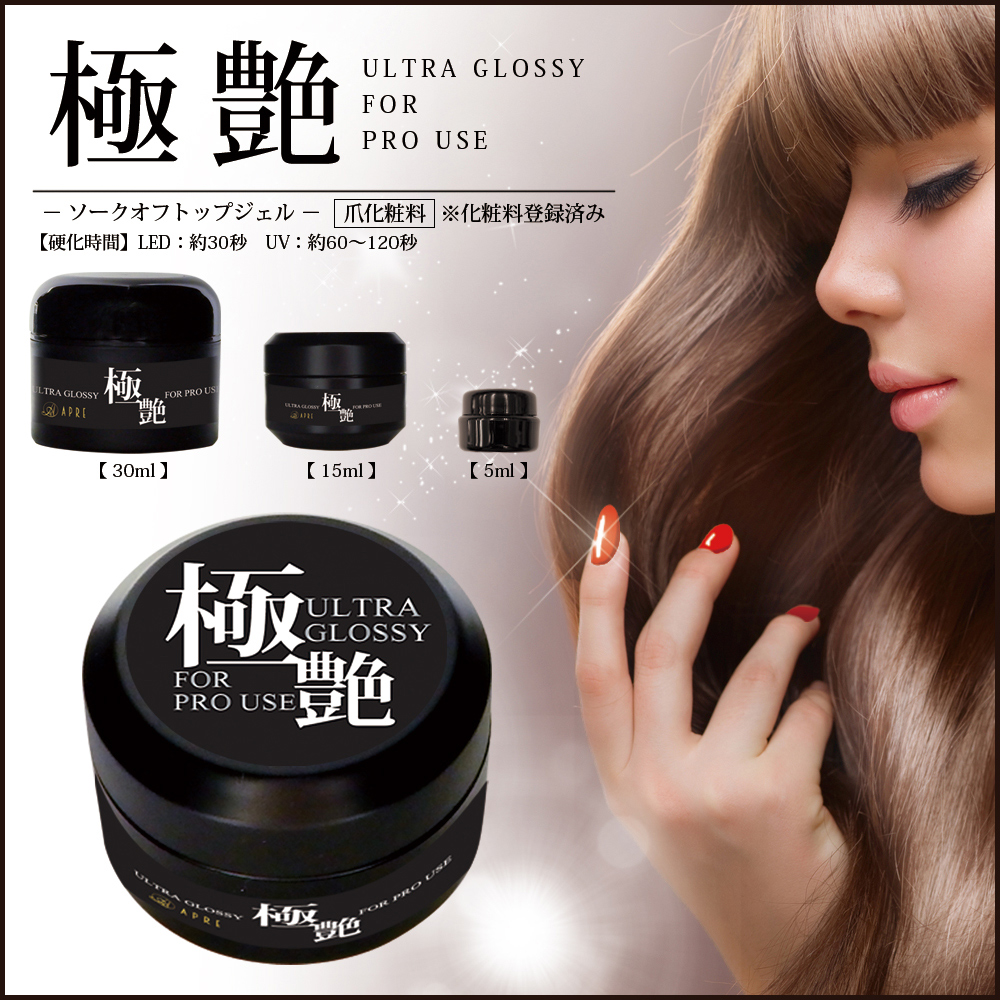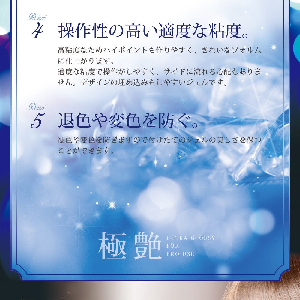 改良を重ねた「極艶」は、今までのトップジェルを覆すほどの美しい艶が自慢です。