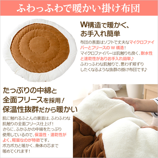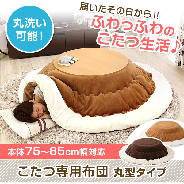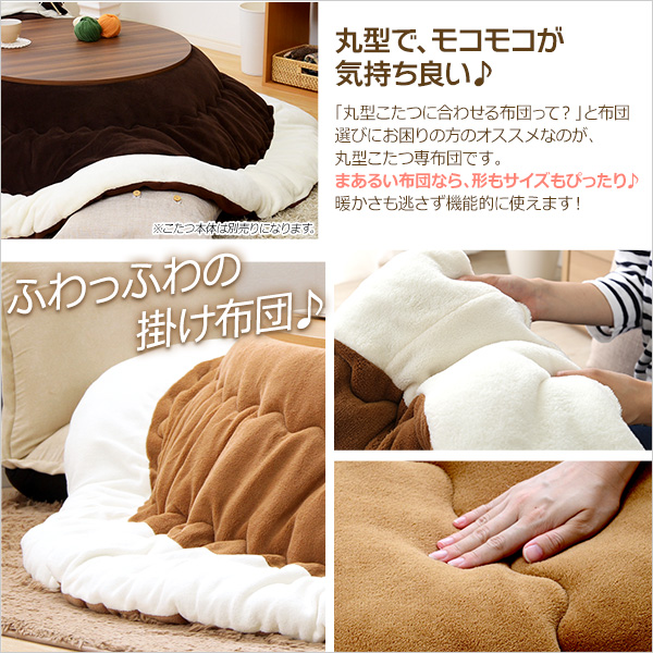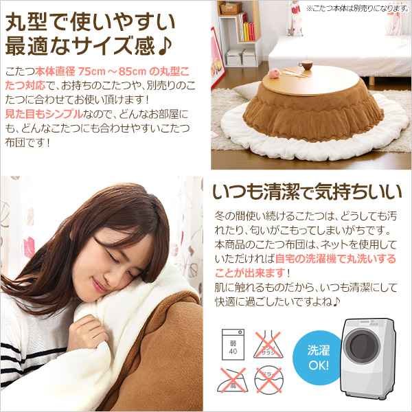 ●幅75-85cmの丸形テーブルに対応しているのでお持ちのこたつに合わせて使えるこたつ布団!
