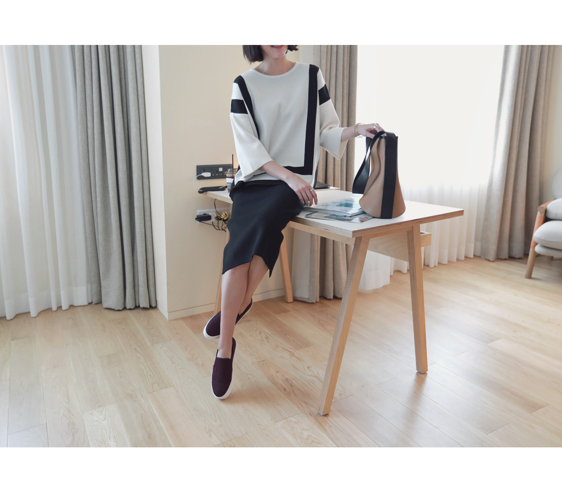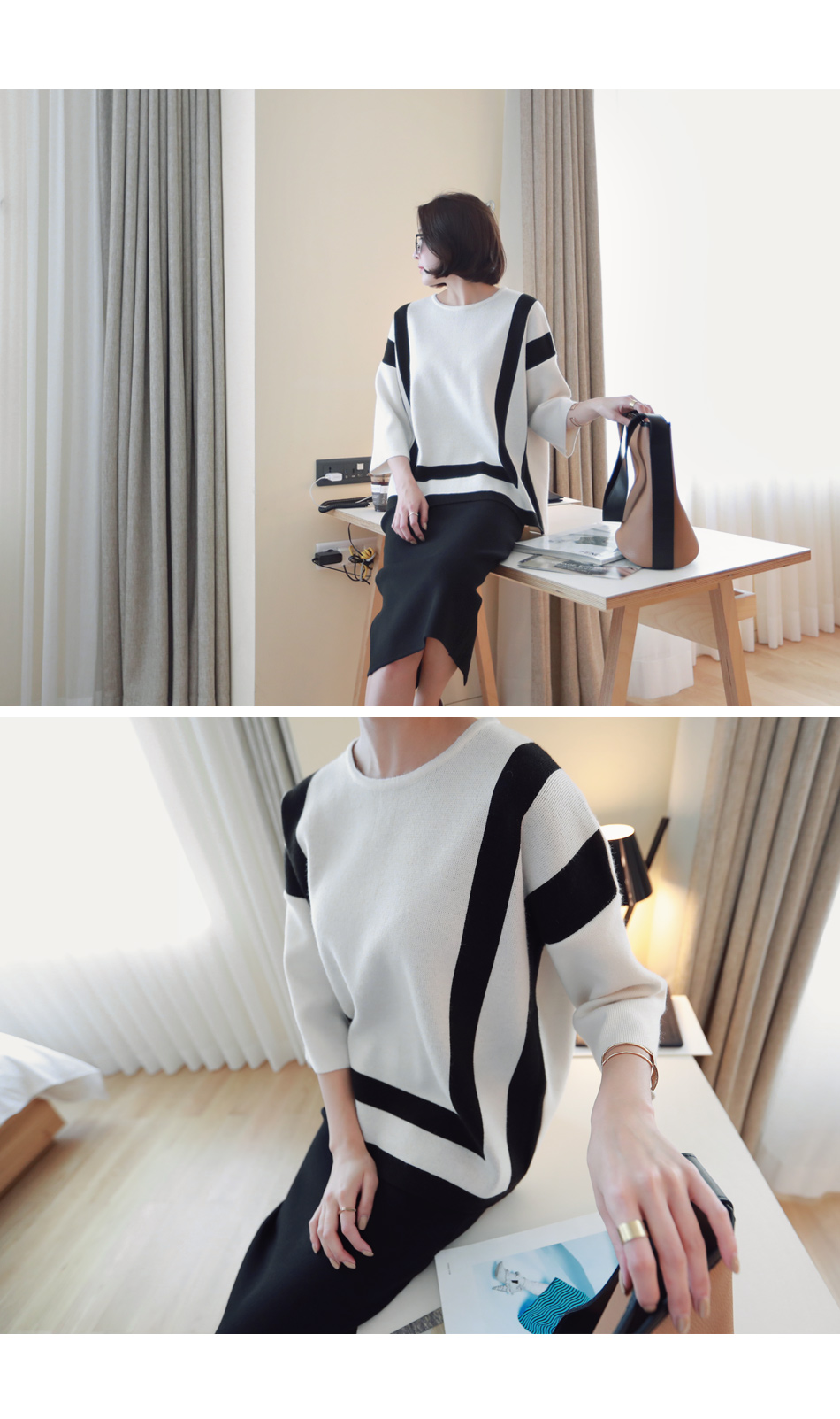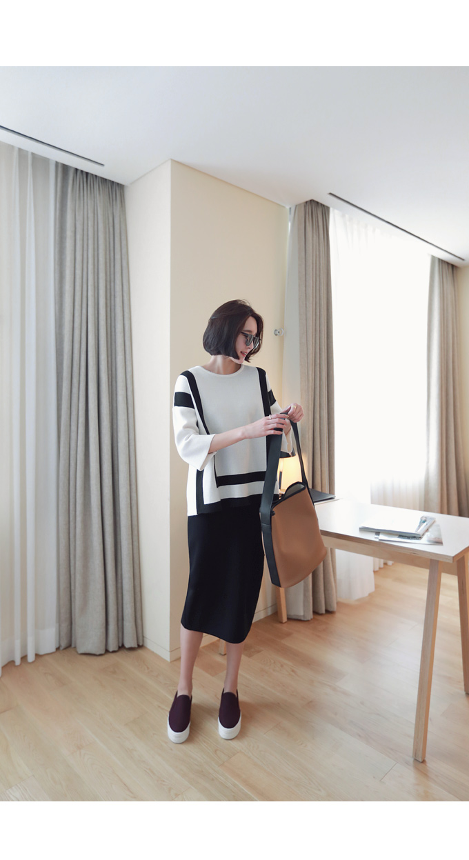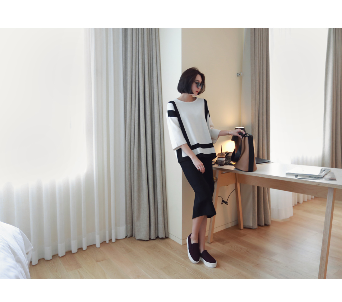 ストライプモチーフのニットウェア。