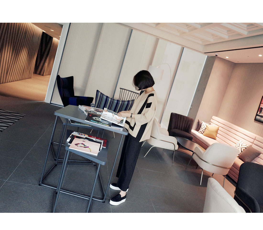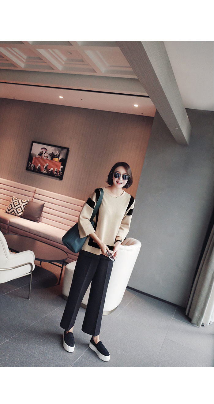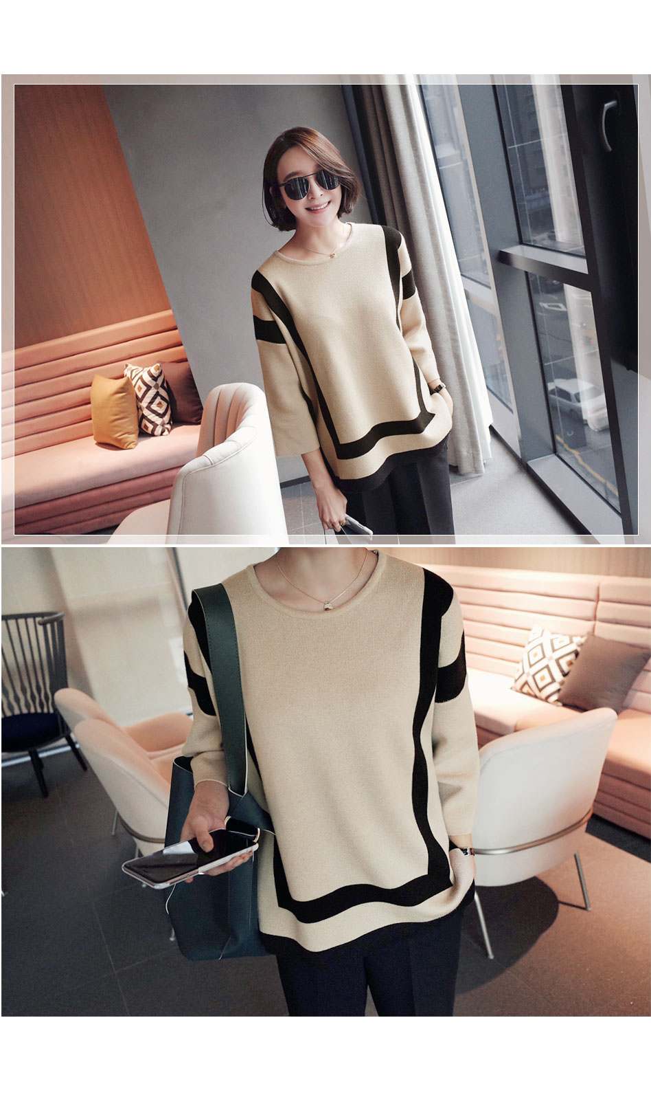 ストライプモチーフのニットウェア。