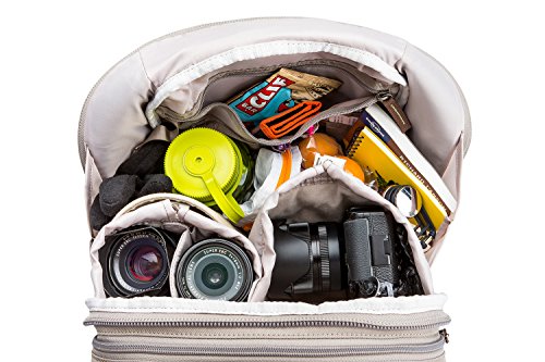 Fits a 15” laptop + 10” tablet (iPad) + one mirrorless body or small DSLR with a small to medium zoom attached (lens hood reversed) plus 1–2 additional lenses, or a medium GoPro kit