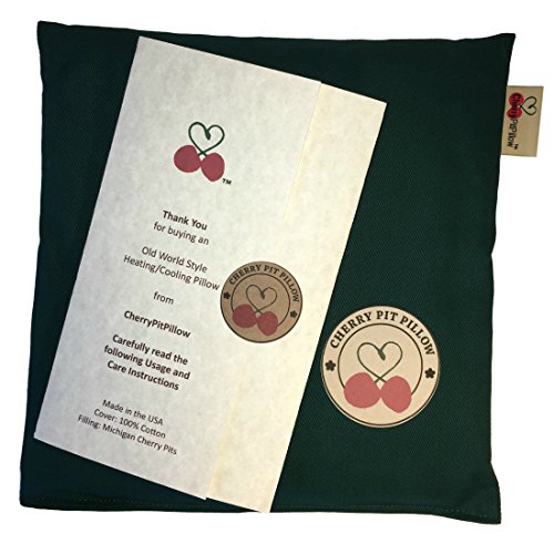 -. Feature : Green Natural Heating or Cooling Pillow - Helps with Muscle, Joint, Stomach Pain / Soft brushed 100% cotton fabric / Filled with cherry pits from Michigan, washed and dried right after pitting / Approx. 10 x 10 inches soft 100% cotton pillow filled with approx. 28 ounces of Michigan cherry pits. / Made in the USA