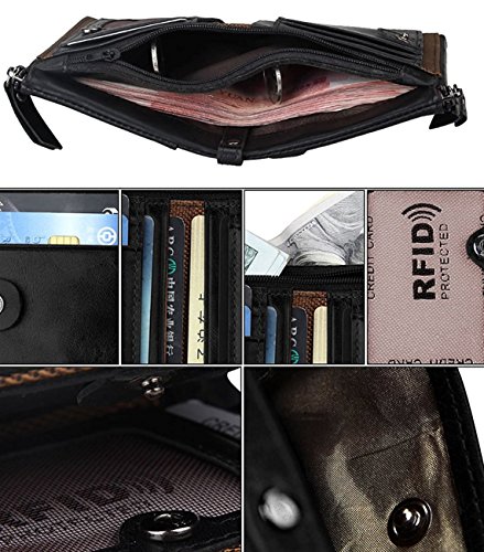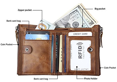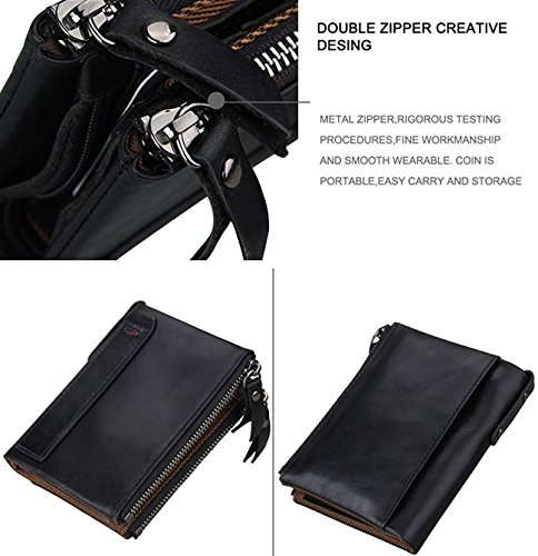 Chemstar Men Coin Purse Bifold Wallet Genuine Leather Zipper Change Purse Coin Pouch