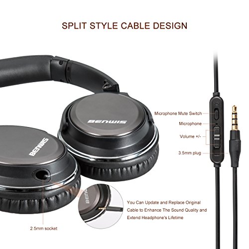 Compatibility, Benwis Wired Computer Headsets, Over Ear Headphones, Lightweight Foldable Hi-Fi Stereo Headset Corded Earphones with Microphone Foldable Deep Bass Noise Cancelling for Computer Cell phone TV etc.