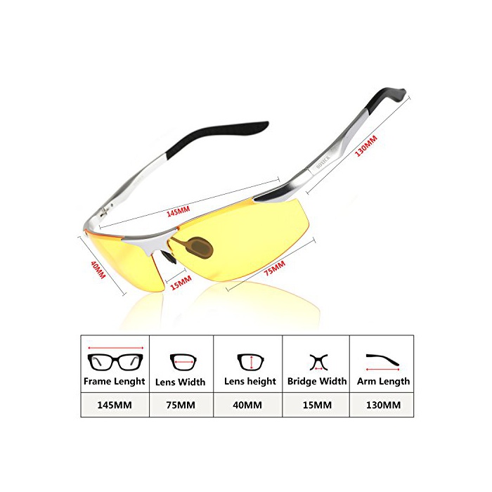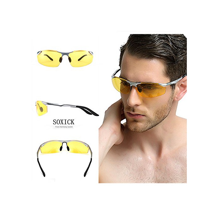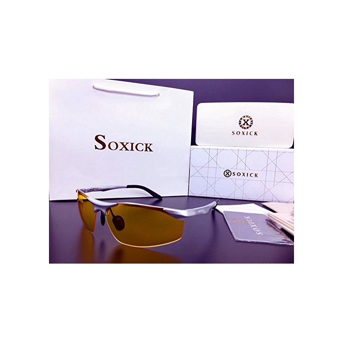 SOXICK Soxick HD 썬글라스 안경 야간 운전 편광 옐로우 렌즈 드라이브 우천방 현 효과 스포츠 UV컷 메탈 프레임 하프 림