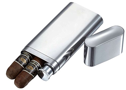 -. Feature : Premium Quality Stainless Steel with Polished Finish Cigar Case with Built-in Flask; / Holds 2 Cigars of up to 54 ring gauge and up to 6.5 inch long.; 2 ounce Capacity for the Flask; / Approx. Dimensions: 6.70 inches (length) x 2.55 inches (width) x 0.90 inches (thickness); Approx. Weight: 7.3 ounces / Perfect as a Wedding Favors, Groomsmen Gift, or for Any Fun Occasion / Comes Packaged in White Visol Branded Box