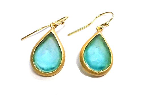 24k gold over bronze french wire drop earrings with cast glass