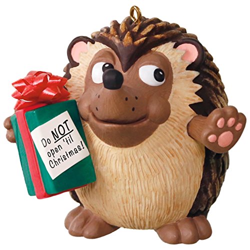 - This adorable hedgehog holds a present in one hand with his other hand held up to thwart any of those sneaky present peekers. The Christmas ornament also plays a clip from U Can't Touch This to forewarn anyone who might mess with the presents. Battery-operated music feature includes two replaceable LR44 batteries.