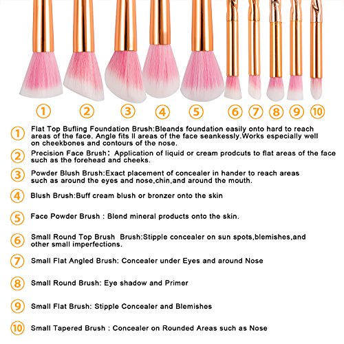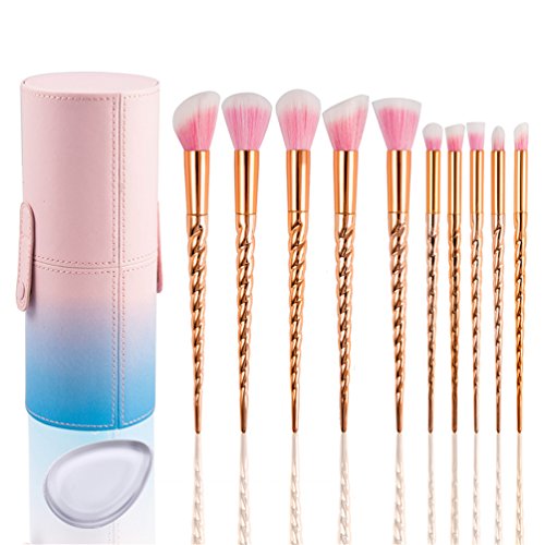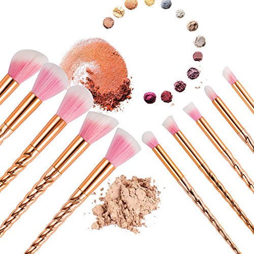 Fashion Base Professional Unicorn Premium Makeup Brushes-10Pcs Synthetic Soft Cosmetics Set Tools-Face,Highlighter,Foundation,Concealer,Eye...