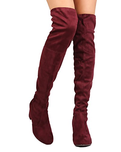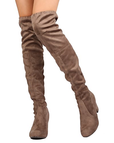 Nature Breeze FC84 Women Faux Suede Thigh High Chunky Heel Boot