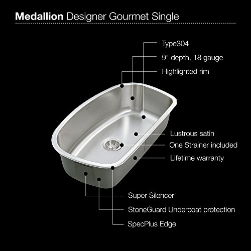 Houzer MB-3300-1 Medallion Designer Series Undermount Stainless Steel Large Single Bowl Kitchen Sink