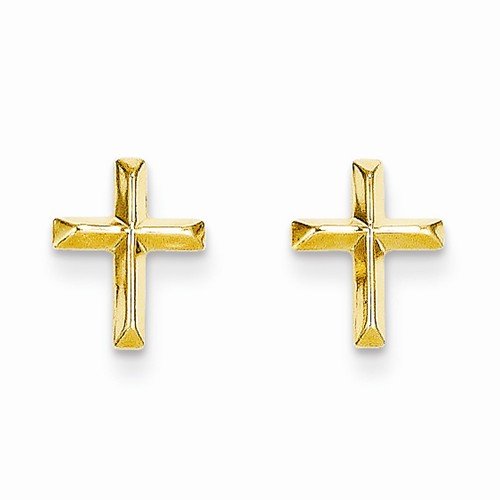 Solid 14k Yellow Gold Polished Cross Crucifix Post Studs Earrings (8mm x 6mm)