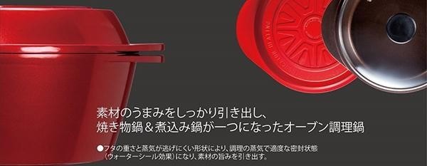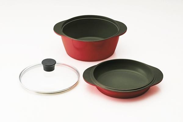 | 焼き物鍋&煮込み鍋がひとつになったオーブン調理鍋です。鍋内面は、くっつきにくいダイヤモンドコーティング!調理に合わせて深鍋・浅鍋・ガラスブタを組み合わせることにより、炊く・煮る・蒸す・焼く・炒める・茹でる・揚げるなど色々な調理法をこなします。IH・ガス火など、多様な熱源で使えるのも嬉しい! |