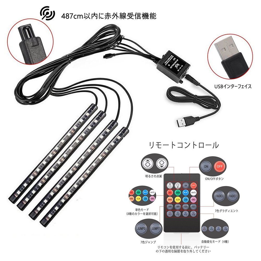 Car LED tape light that can be used just by connecting to USB.