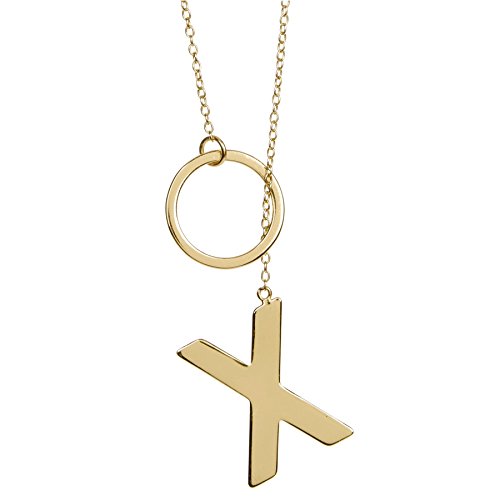 Kiss, kiss. Bang, bang. Have a little fun with your jewelry! Slip this delicate lariat design over your head and adjust the X as you like. Necklace come undone? Simply drop the chain through the O and pull through.Feature