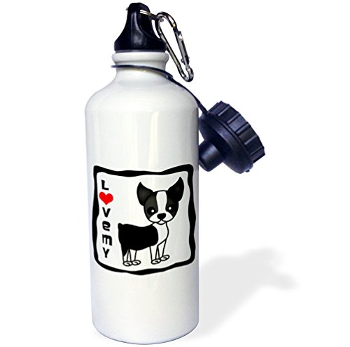 3dRose wb_12084_1 I Love My Boston Terrier Sports Water Bottle, 21 oz, White