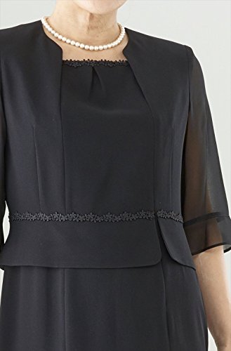 -. Feature : [着用シーン] 葬儀・告別式・通夜・一周忌 弔問・通夜・法事 卒園式・卒業式 [サイズ表記について] バスト・ウエスト・ヒップなどは商品仕上がり寸法になります。ヌードバスト・ヌードウエスト・ヌードヒップはヌードサイズといい、肌着1枚を着用されている際の目安のサイズになります。実際のサイズは商品仕上がり寸法をご確認ください。 / [原産国] 中国を中心に海外製(縫製:中国を中心に海外生産、企画・デザイン:日本、生地:日本) [洗濯表示] ドライクリーニング対応 / [素材] 表地:ポリエステル100% / 別布:ポリエステル100% / レース:上糸レーヨン100%、下糸綿100% / 裏地:ポリエステル100% / [ご利用シーズン] オールシーズン対応 春:○ 夏:○ 秋:○ 冬:○ [モデル着用サイズ] モデル身長:169cm 着用サイズ:9号 / [アイテム説明] MONOIR(モノワール)では、オシャレな喪服をお探しの女性にデザイン性の優れたレディースブラックフォーマルをご提案しております。豊かな膨らみ感があり、落ち感の良い素材は立体的な仕上がりで高級感を醸し出します。衿先を丸くしたテーラーカラーや細めに設定した片玉縁ポケットが優しげなジャケット。袖口にスリットを入れて折り返したままの着用が可能です。身頃の切替を利用してファスナーをつけ、前開きにしたワンピース。前での開閉だから誰かに手伝ってもらうことなく脱ぎ着ができます。ウエストのペプラムがお腹周りをさりげなくカバーしたお洒落なワンピースです。夏場にはこのワンピース一枚で着用していただけます。