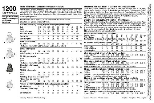 -. Binding : Misc. -. Brand : Simplicity Creative Patterns -. Color : white -. EAN : 0039363512004 -. Feature : Instructions are written in English, French and Spanish / Made in the USA / Available in sizes: h5 (6-8-10-12-14) -. Label : OUTLOOK GROUP CORP -. Manufacturer : OUTLOOK GROUP CORP -. Model : 1200 -. MPN : US1200H5 -. NumberOfItems : 1 -. PackageQuantity : 1 -. PartNumber : US1200H5 -. ProductGroup : Art and Craft Supply -. ProductTypeName : HOME -. Publisher : OUTLOOK GROUP CORP -. ReleaseDate : 2015-01-31 -. Size : H5 (6-8-10-12-14) -. Studio : OUTLOOK GROUP CORP -. Title : Simplicity Creative Patterns 1200 Misses' 3/4 Circle Skirt with Length Variations, H5 (6-8-10-12-14) -. UPC : 039363512004