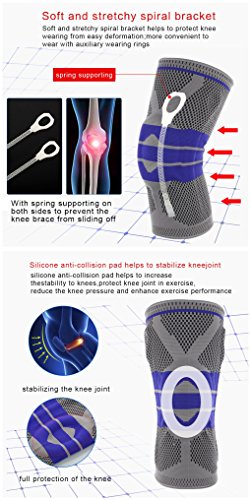 -. Feature : ▲Three divensinal braided silicone anti sports protection give you full pressure to the knee joint movement provides pressure more healthy. / ▲Anti-collision sports silicone, enhance the stability of the knee, protect the knee in the intense movement, reduce patella pressure, enhance the ?performance of the movement / ▲High flexibility and strong ductility,good ventilation,more comfortable and considerate,effectively prevent muscle jitter,close care to the knee / ▲Soft and flexible spiral bracket,to protect the knee support is not easy to deformation,increase the auxiliary easy to wear ring,wearing become more convenient / ▲Please note:Select the approP.R.Iate size and color according to the image size,but the knee is very flexible, usually the majority of the crowd also can be used.